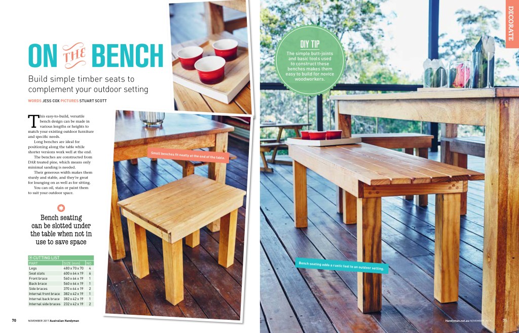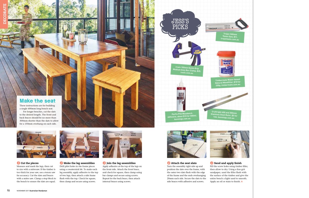 This article featured in Australian Handyman magazine in November 2017. I wrote the article and took step-by-step photographs, then assisted with the styling at the photoshoot.